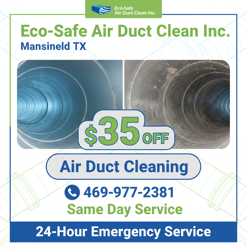 Take advantage of limited-time savings designed to help Mansfield homeowners enjoy cleaner air without stretching their budget. Eco Safe Air Duct Cleaning Mansfield TX offers straightforward deals with honest pricing, no surprises, and the same reliable service our customers trust every day.
